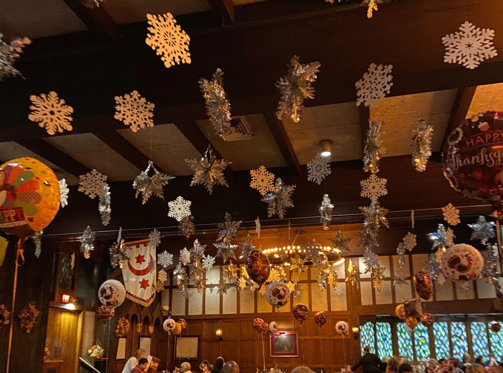 Both times, I arrived to find the place decorated for the holidays on top of it’s already overwhelming ambiance. It screamed, “Let’s see the serfs survive this winter! Pass the sour cream!” And as one who doesn’t like to so much as even acknowledge that Christmas trees go inside homes, I will tell you I loved every sparkly inch of it. Tie more balloons to my table. Hang shiny snowflakes from every ceiling tile. Now bring my a 12 ounce filet, because it is the beginning of the holidays and our yearly allotment of fucks to give has just recently run out.